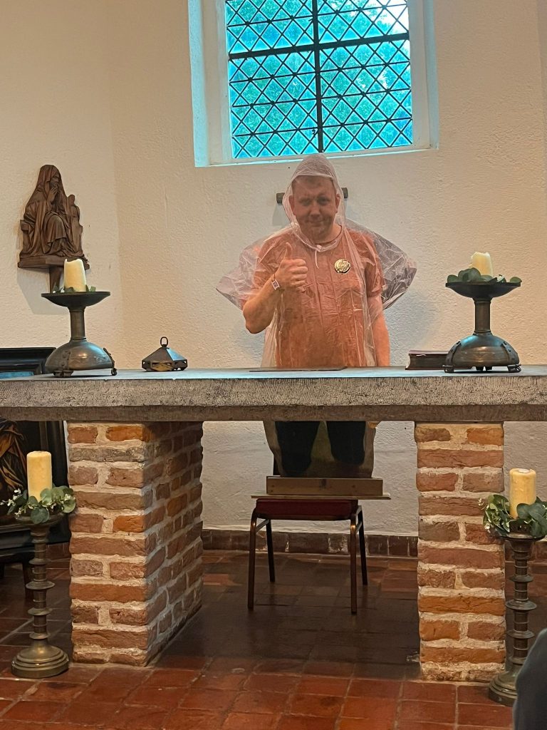 Maandagmorgen speelt zich af op kasteel Doornenburg en ook daar is inmiddels zichtbaar wat de kermis tot nu toe heeft opgeleverd. Eén van die dingen is een kartonnen afbeelding van Bekende DoornenburgerT Rob Hendriks. Zijn afbeelding circuleert al dagen op de troon en in de feestzaal.