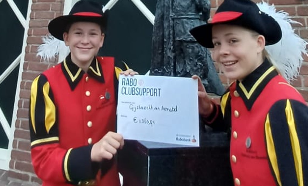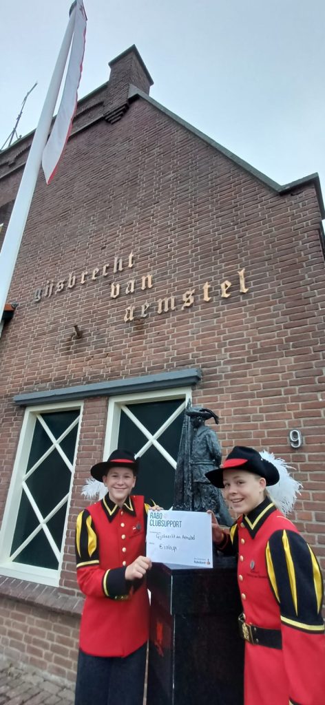 Enkele jeugdleden van schutterij Gijsbrecht van Aemstel leek het leuk om in uniform de geldprijs op te halen. De RABO Sinterklaas had echter zijn/haar brilletje niet goed opgepoetst en deelde een cheque uit met daarop het bedrag van € 1365,94! Het bedrag voor de voetbalclub Gijsbrecht van Aemstel!