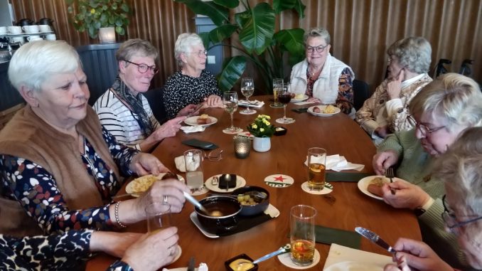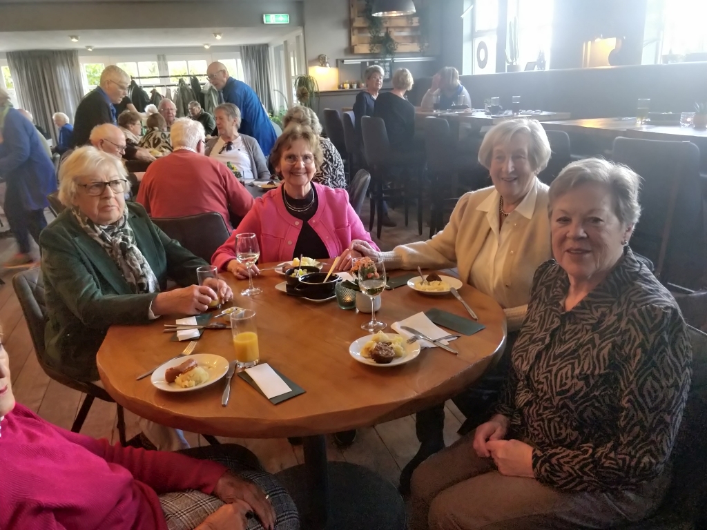 Of, zoals één van de aanwezigen het formuleerde: “Buiten giert de wind en laten de bomen hun verkleurde bladeren vallen. Binnen bij ‘Lekker Aanwaayen’ is het warm en genieten de Zonnebloem gasten van afdeling Doornenburg van een gezellige middag met stamppot en een heerlijk dessert. Bedankt voor de gastvrijheid ‘Lekker Aanwaayen’!”