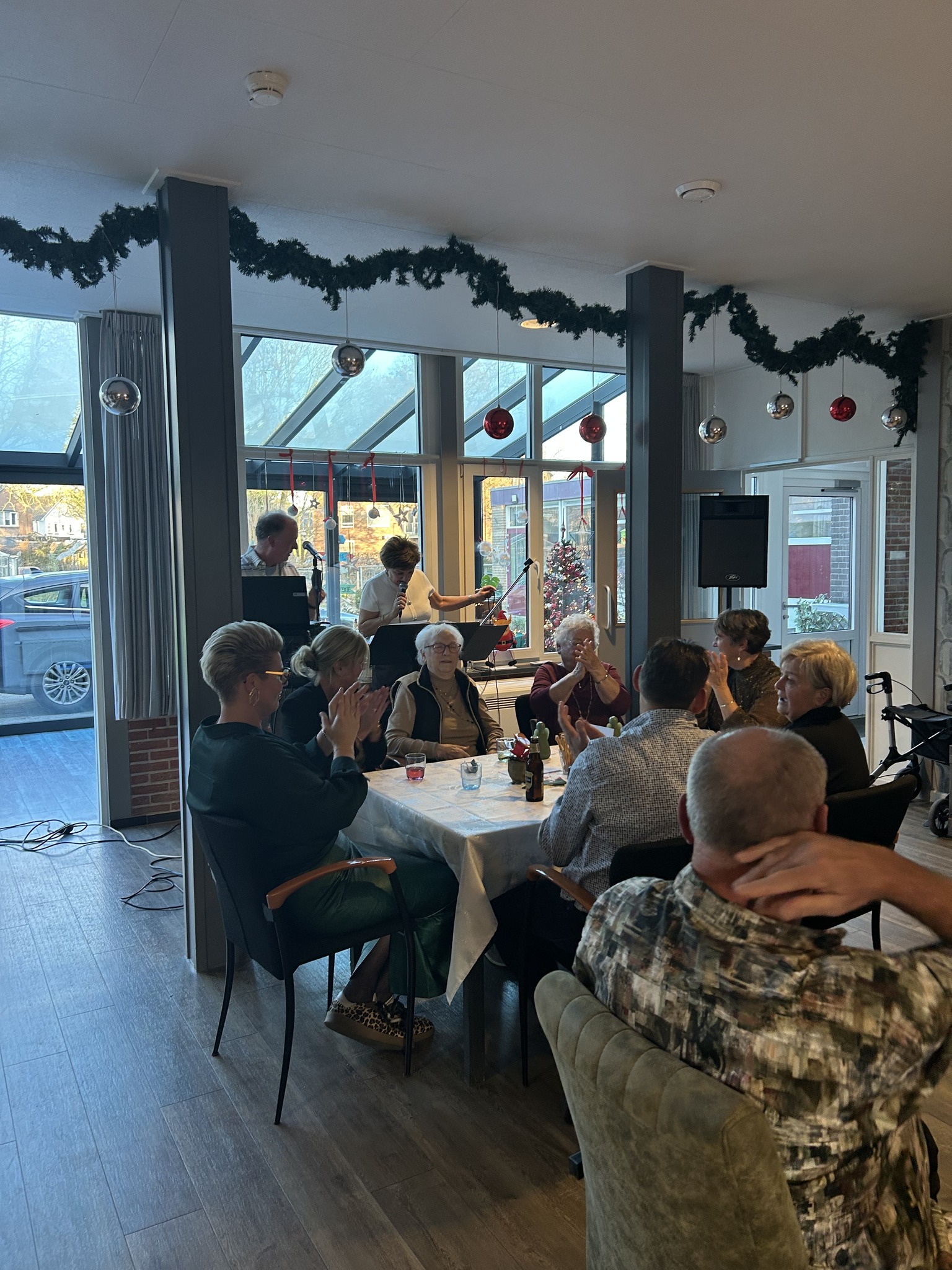 Ook bij Zorgvoorziening Merlijn was het raak. Onlangs vierden bewoners, personeel en vrijwilligers van een gezellige middag met mooie muziek en zang van Bert en Belinda.