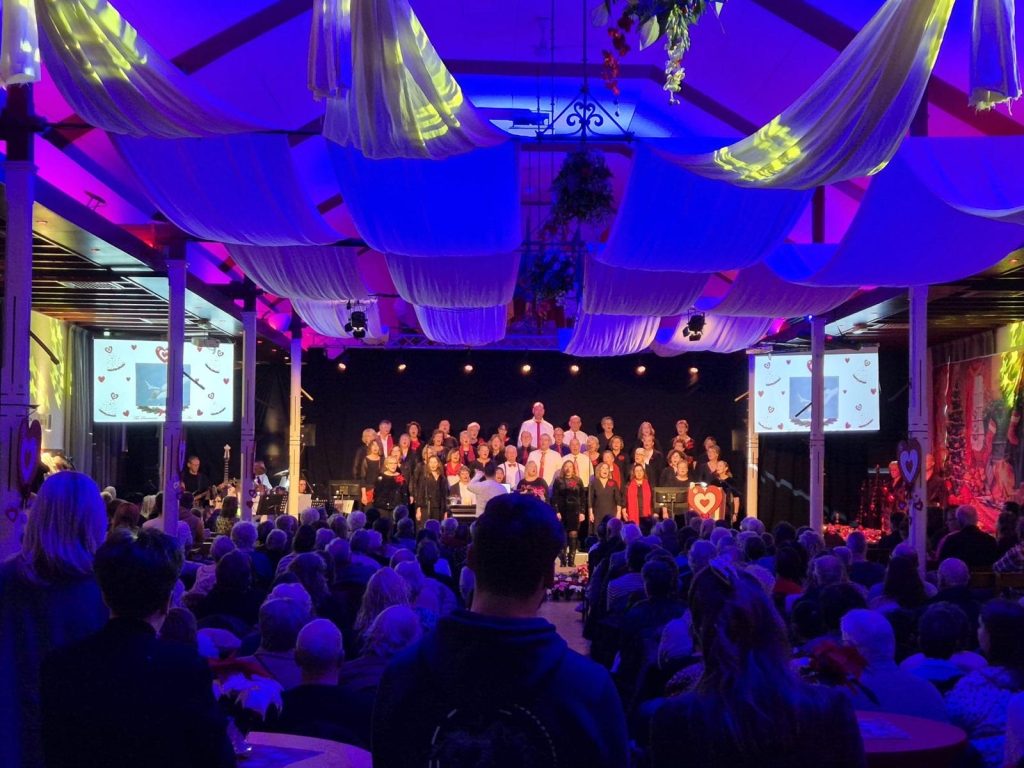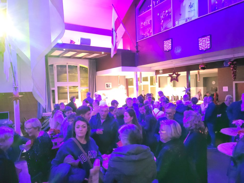 Het koor zong voor een stampvol schuttersgebouw bekende en minder bekende kerstliedjes, waarbij kerstverhalen voor sfeer en diepgang zorgden. Indrukwekkend was het persoonlijke verhaal van een koorlid over de impact en gevolgen voor ouders en familie van een geconstateerde hartafwijking bij een pasgeboren baby.