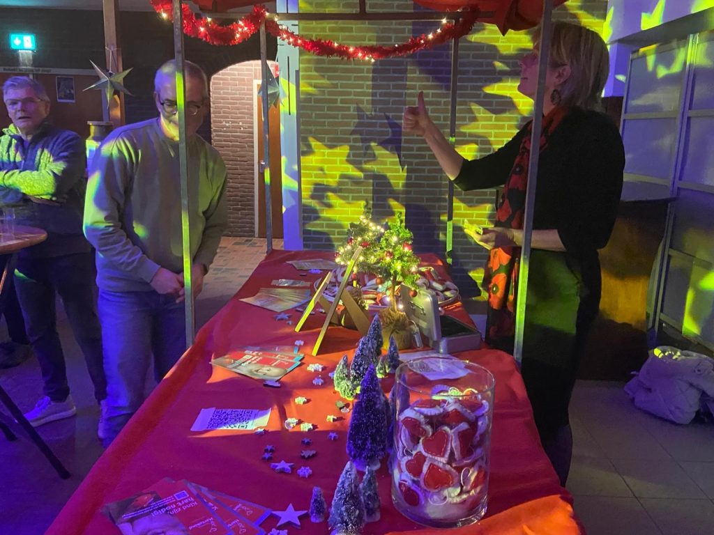 Het verhaal stond niet op zich: tijdens de bijeenkomst werd aandacht gevraagd voor de stichting Hartekind waarvan een kraampje aanwezig was voor financiële steun.