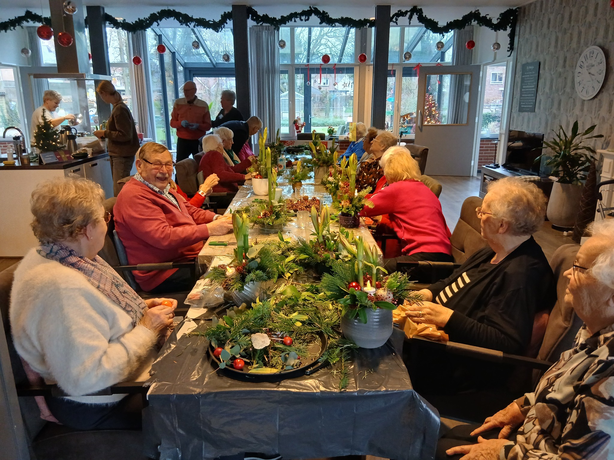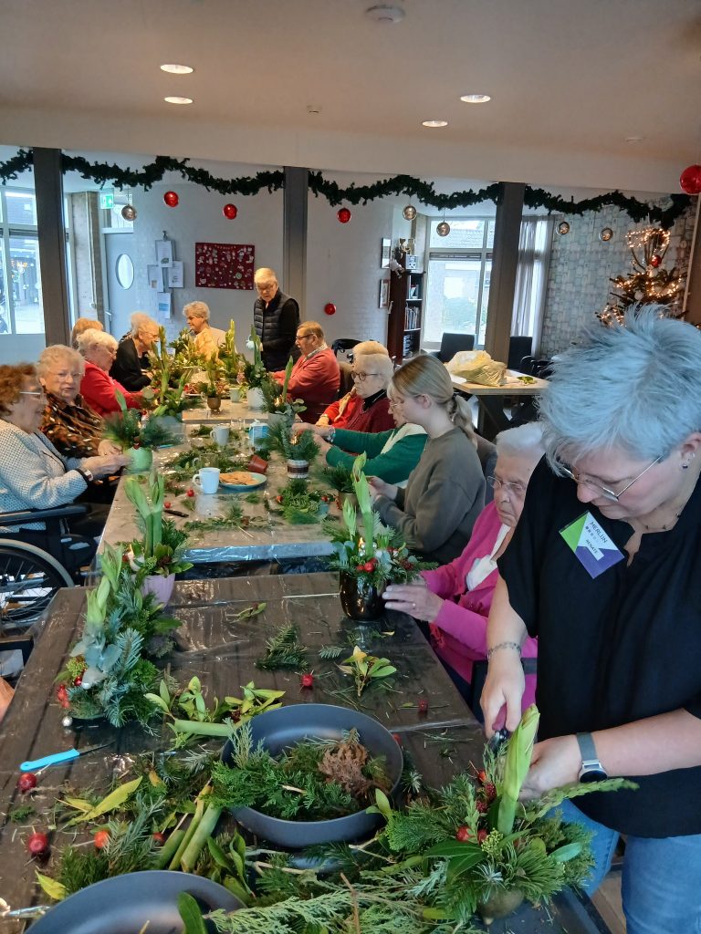 Vervolgens werden Merlijntjes en familie aan het werk gezet en was het kerststukjes fabriceren geblazen! Kerstsfeer komt namelijk niet zomaar aangevlogen. De materialen trouwens wel, want Amarylliskwekerij Kersten Hegeman leverde de prachtige bloemen.