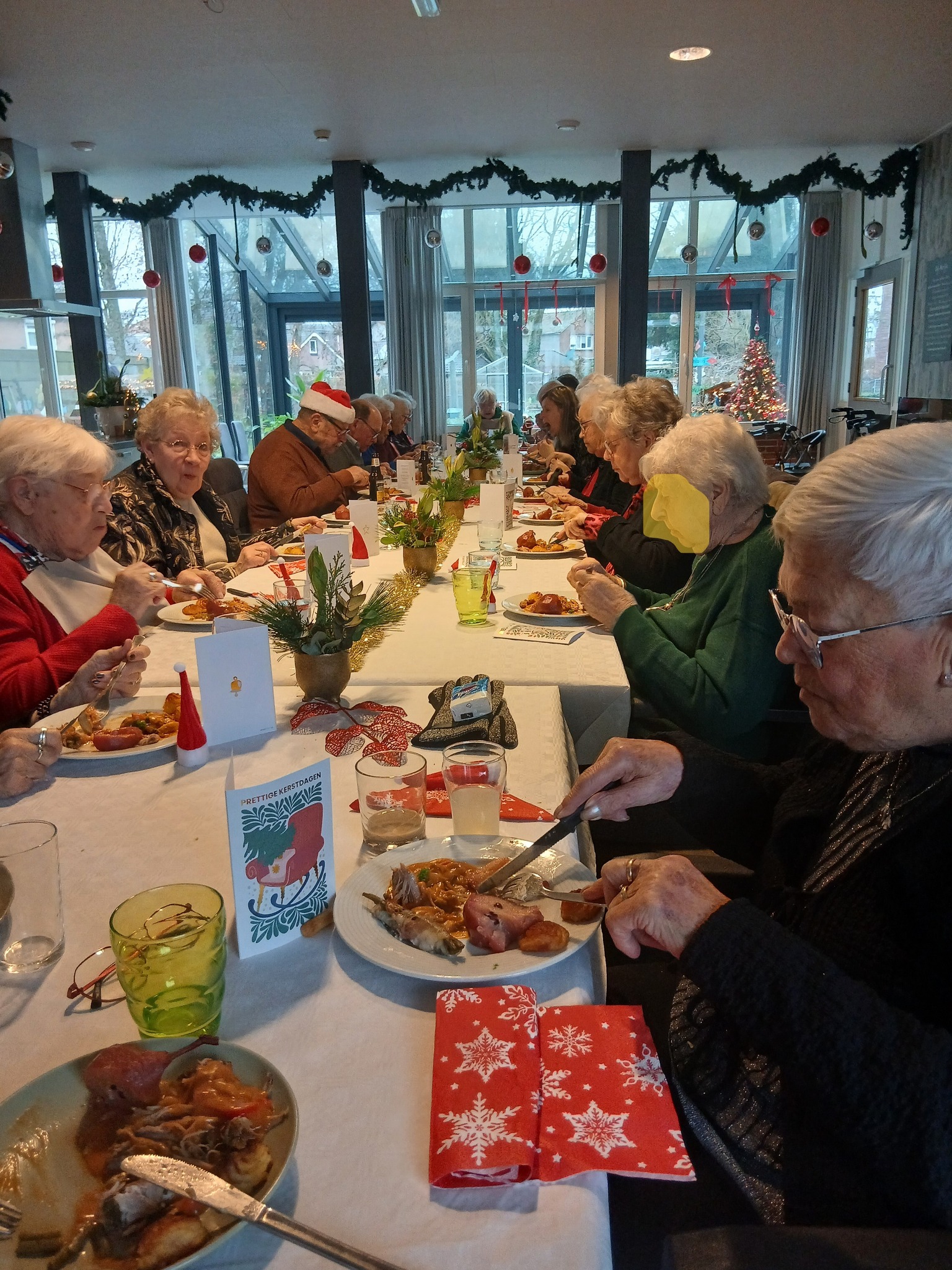 Tussendoor werd het kerstverhaal voorgelezen en was het happie snappie dankzij een uitgebreid maar smaakvol kerstdiner bij de prachtige kerstboom, “geschonken door Moed Kerstbomen” aldus de organisatie.