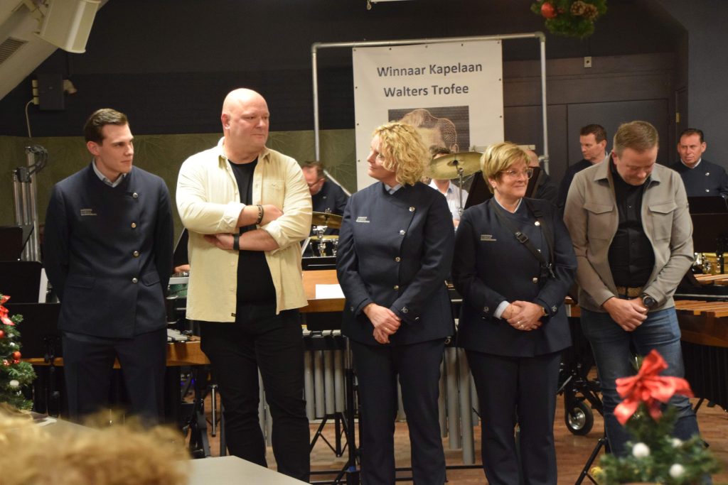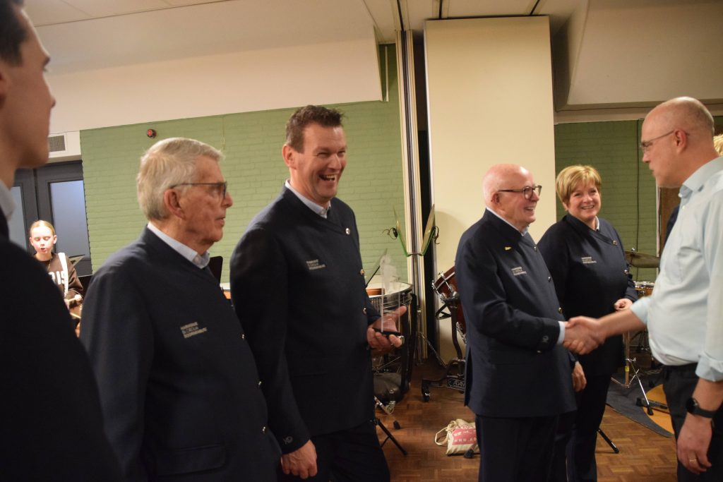 De receptie startte met een terugblik en een blik op de toekomst van de vereniging. Die toekomst werd nog extra uitgelicht met de oprichting van een fonkelnei-je afdeling van de muziekvereniging: de doedelzakblazerTs!
