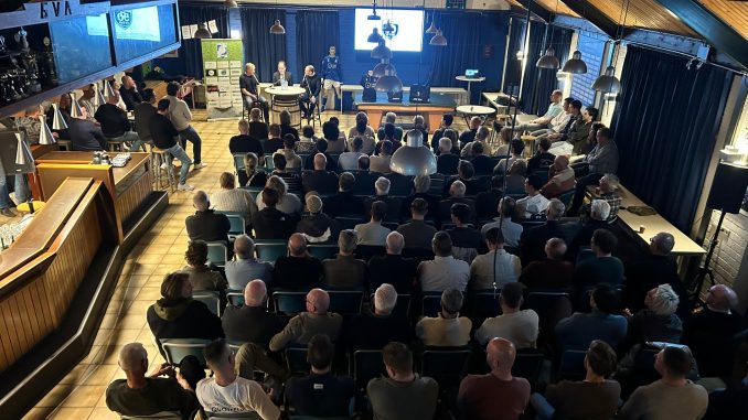 De 63-jarige oud voetbalinternational belandde samen met gesprekspartner Michel van Egmond in een overvolle kantine aan de Vijzel tijdens een zgn. ‘Sprekersavond’.