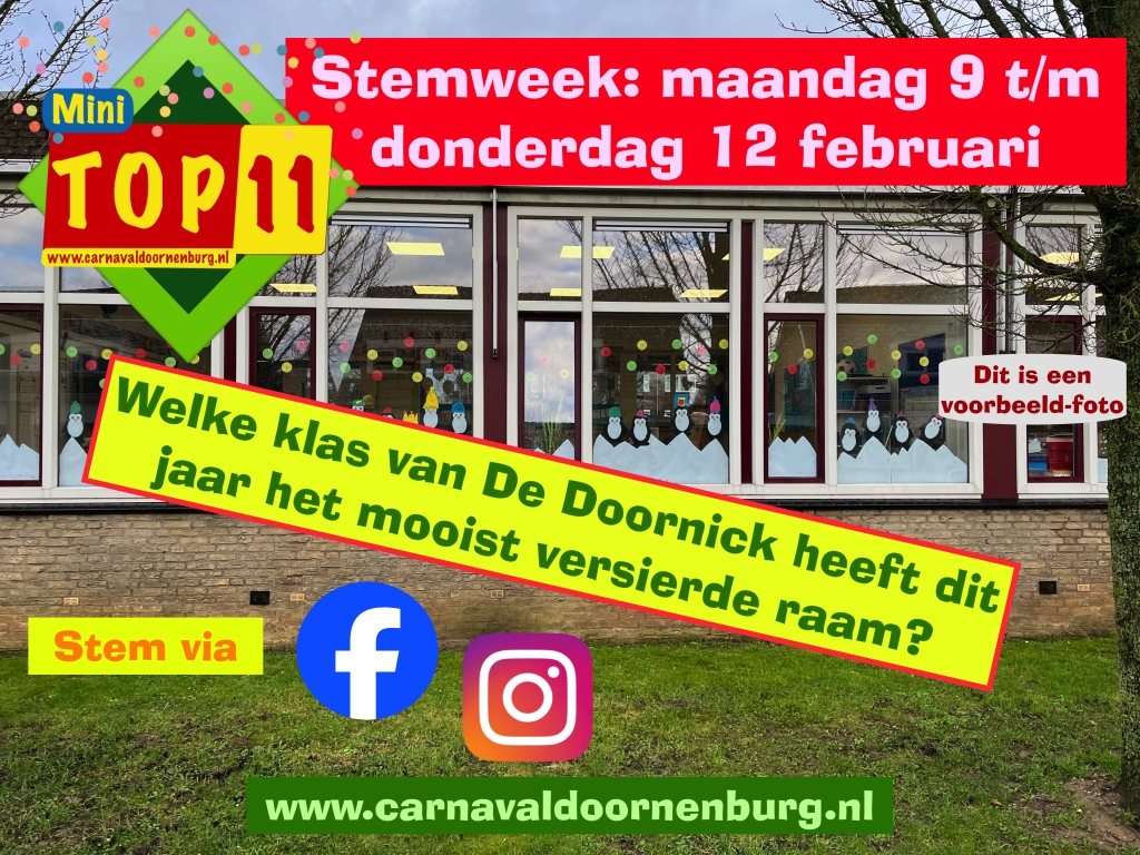 De foto’s met de resultaten van de versierde ramen verschijnen op maandag 9 februari op onze Facebookpagina en Instagram. Er kan alleen op de foto’s gestemd worden van maandag 9 t/m donderdag 12 februari via onze Facebook en Instagram kanalen. Zorg dat je op tijd je stem uitbrengt!