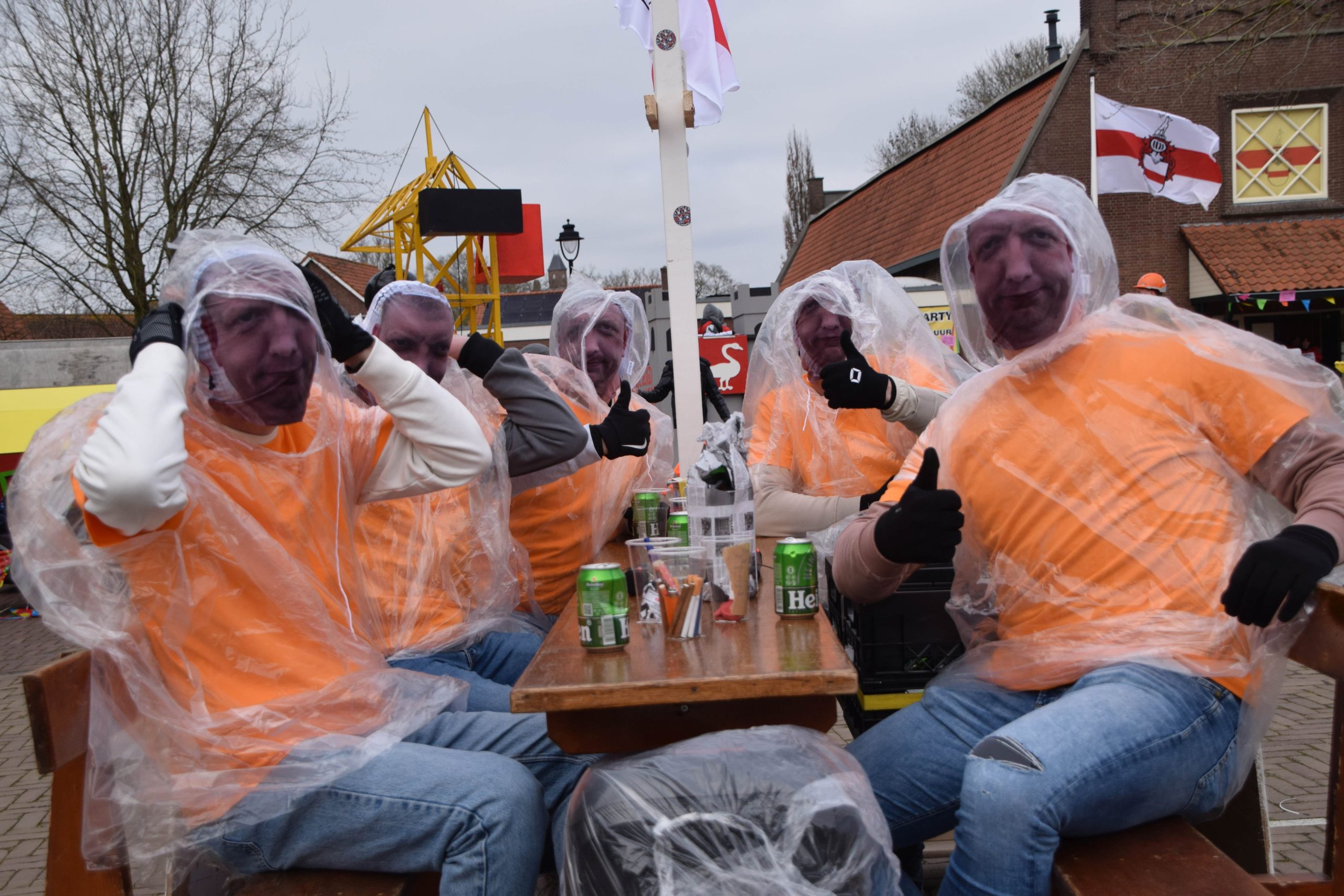 (vervolg) Terwijl amusementsorkest ‘3xNIX’ haar muziekinstallatie plaatste op het podium van het schuttersgebouw verzamelden de deelnemers aan Doornenburgse carnavalsoptocht zich op het dorpsplein.