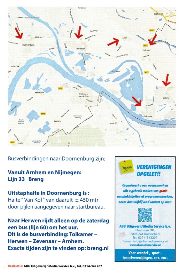 Er zijn 2 startplaatsen: in Doornenburg en in Herwen. De te wandelen afstanden zijn 5-10-15-20-25-30-35 en 40km en men kan starten vanaf 8:00 uur.