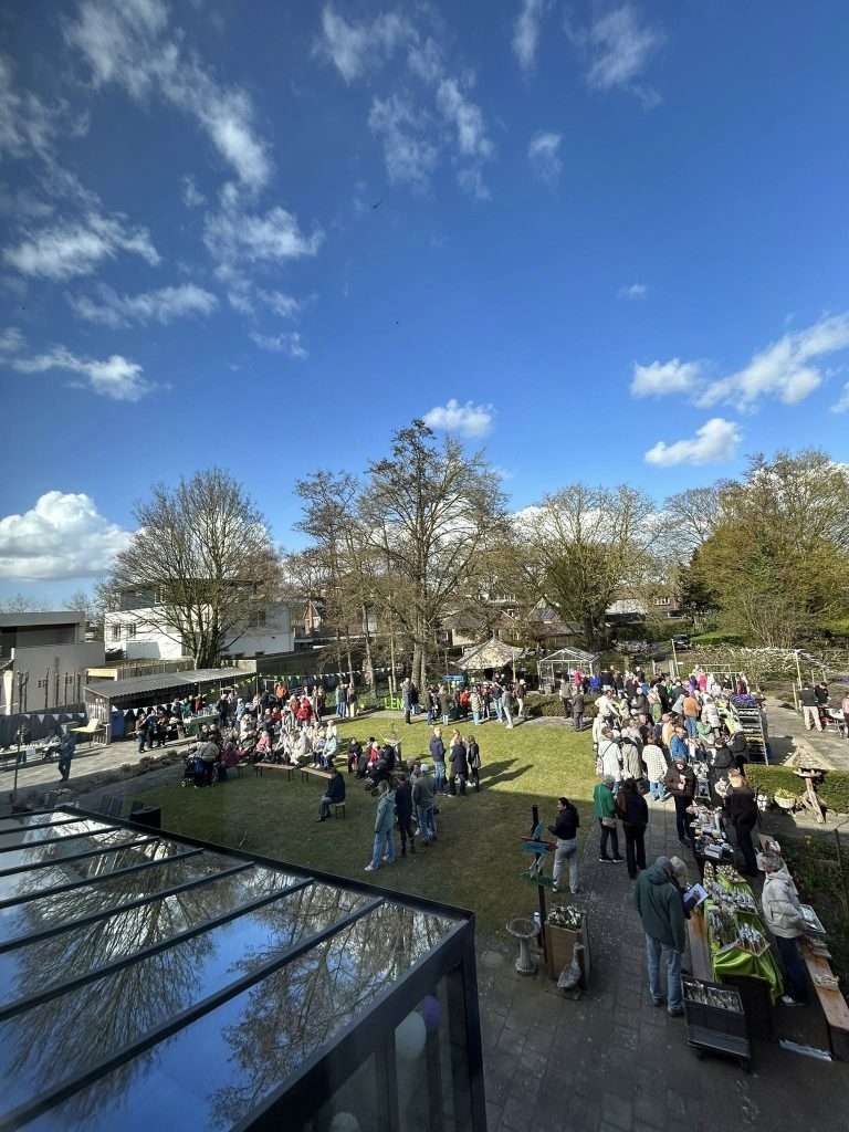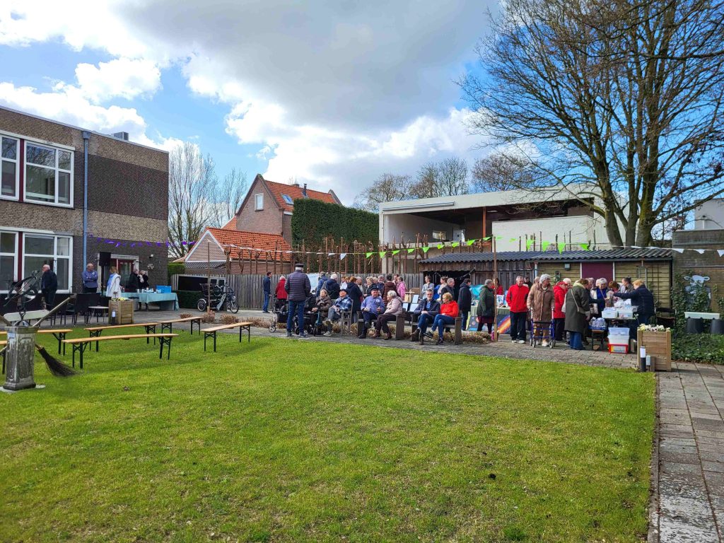 Omdat iedereen die het kluppie een warm hart toedraagt mocht komen was het de hele middag een drukte van belang in de tuin van de feestvierders.
