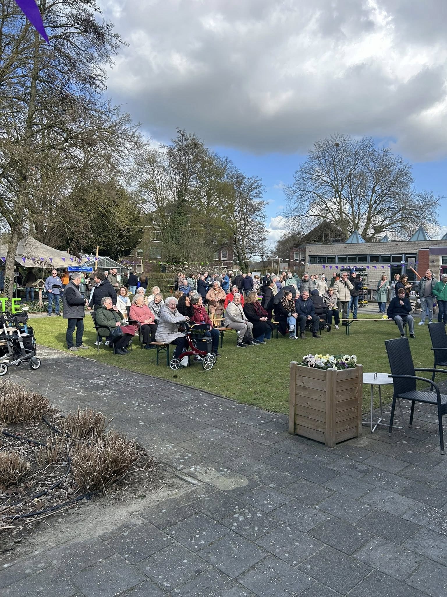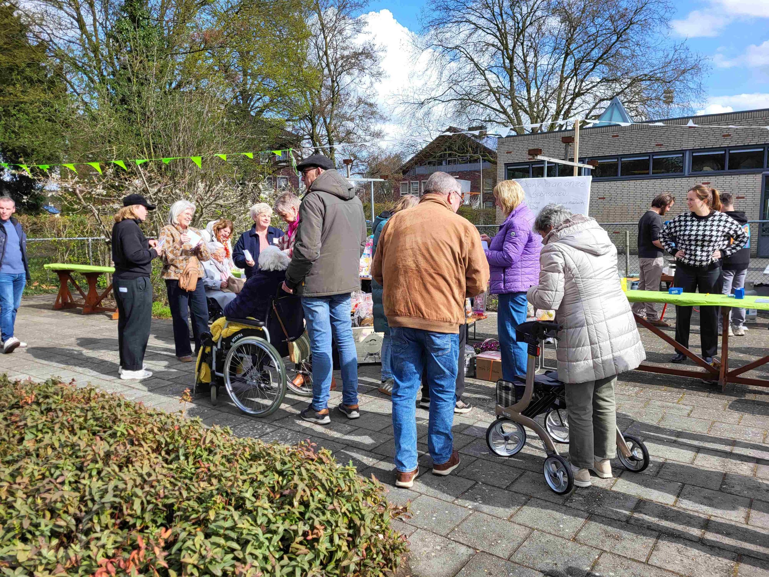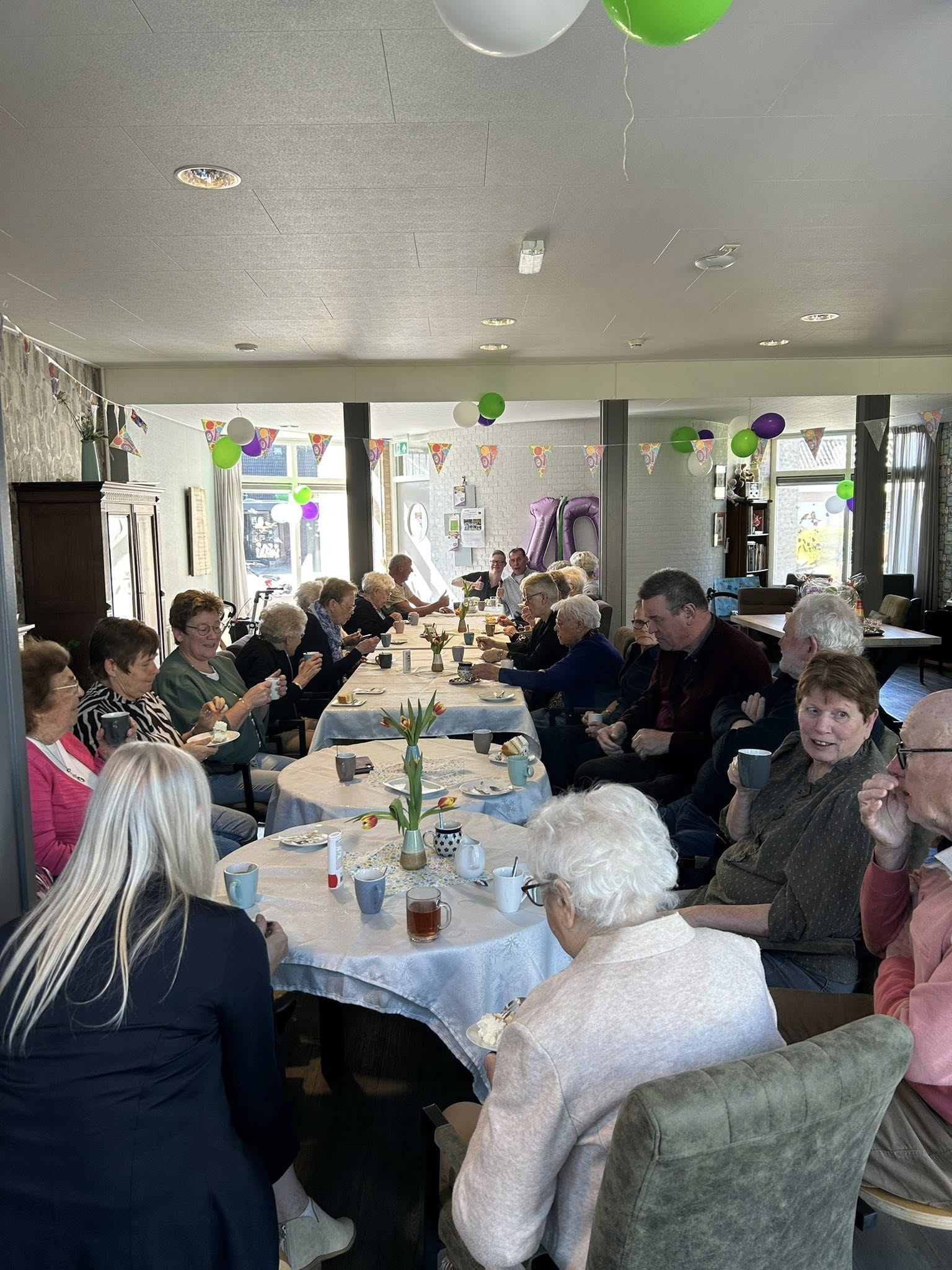 Omdat iedereen die het kluppie een warm hart toedraagt mocht komen was het de hele middag een drukte van belang in de tuin van de feestvierders.