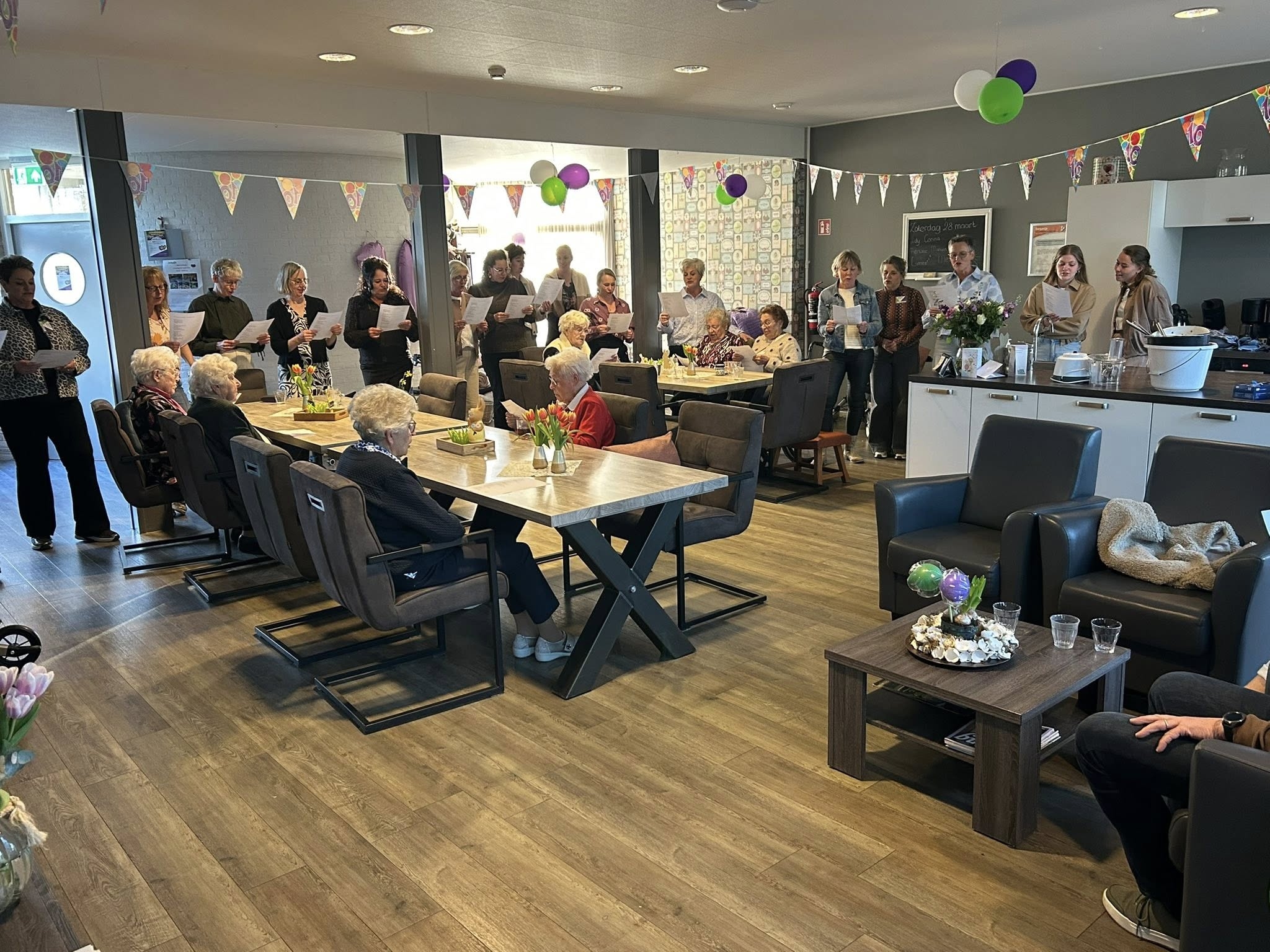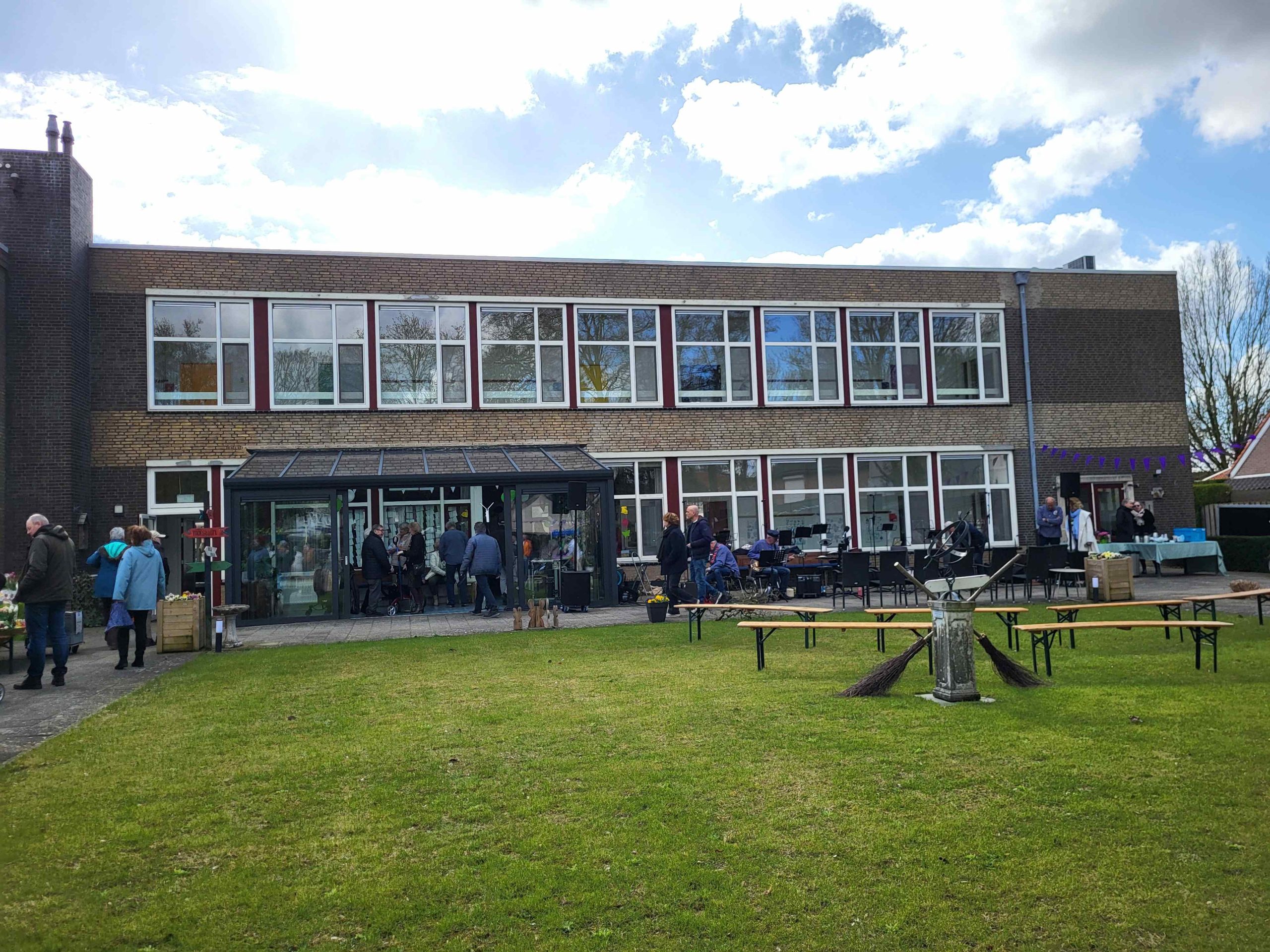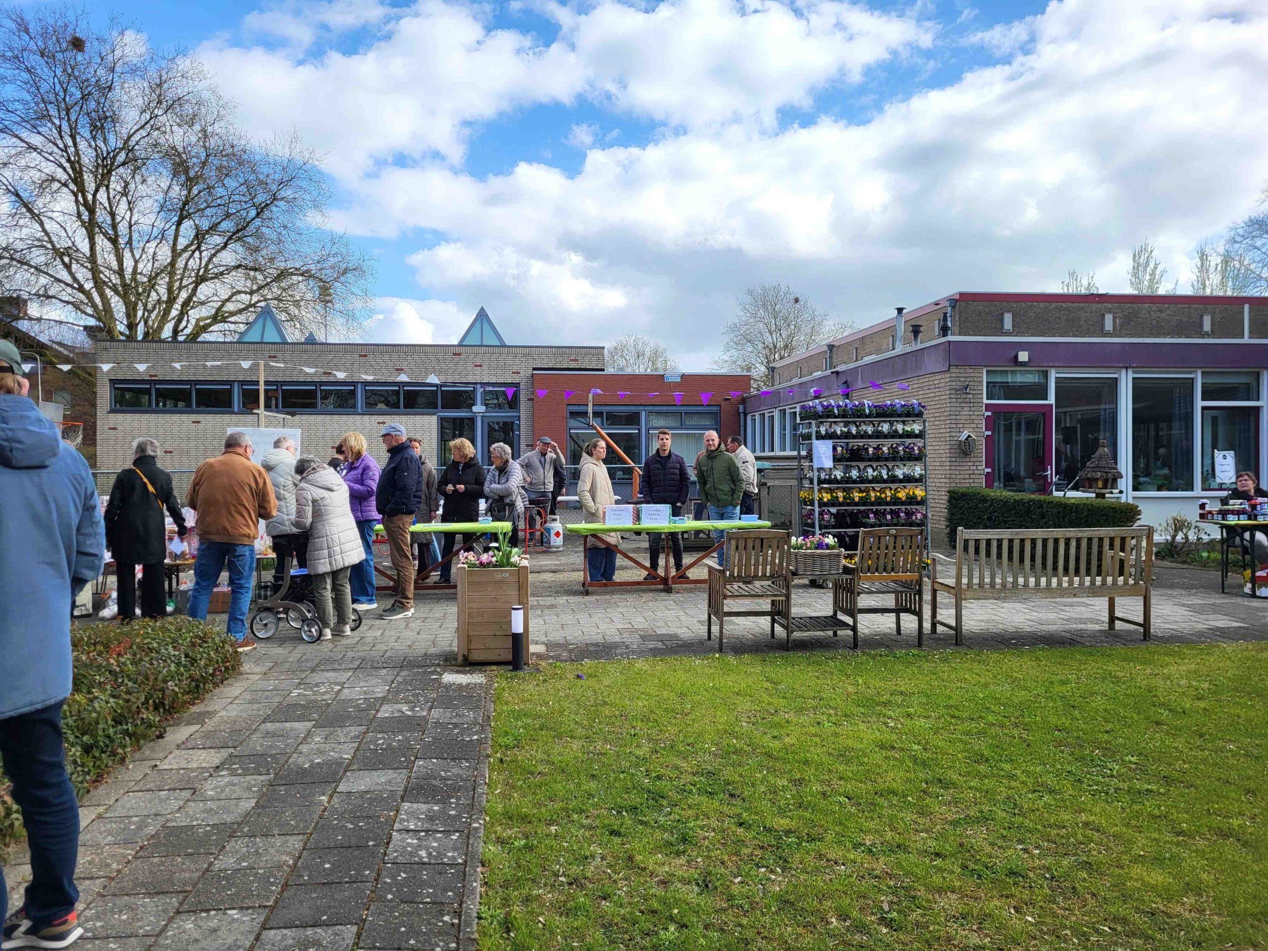 Omdat iedereen die het kluppie een warm hart toedraagt mocht komen was het de hele middag een drukte van belang in de tuin van de feestvierders.